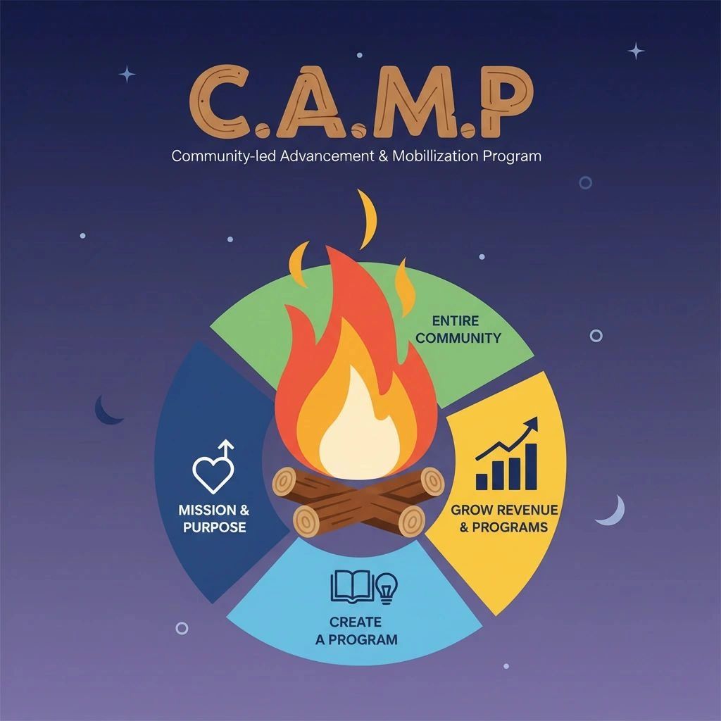 Ambassadors serve as a bridge between the nonprofit and the community. By leveraging their personal networks, they can share the organization’s mission in a relatable way, creating a sense of belonging and shared purpose. The C.A.M.P. model emphasizes relational fundraising rather than transactional approaches.